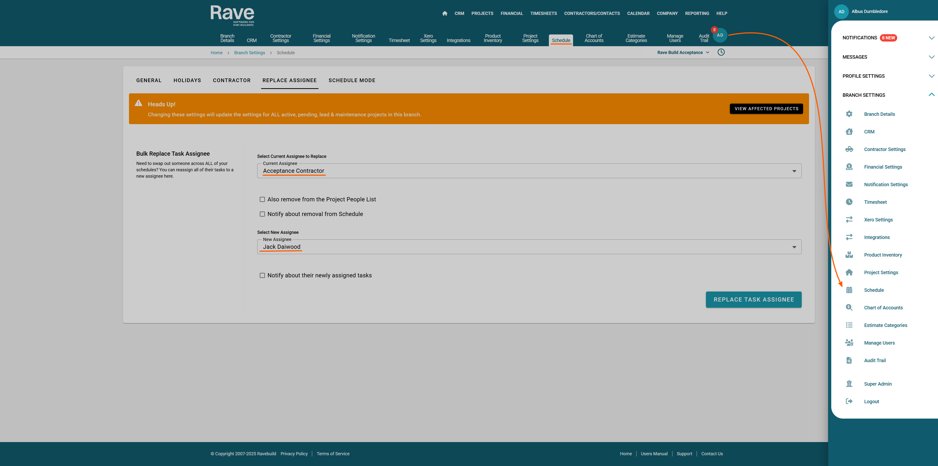 Note: While the project schedule’s ‘Replace Assignee’ action allows you to reassign all tasks for a single project from one task assignee to another, the Bulk Replace Assignee tool here provides a broader and more powerful option.
