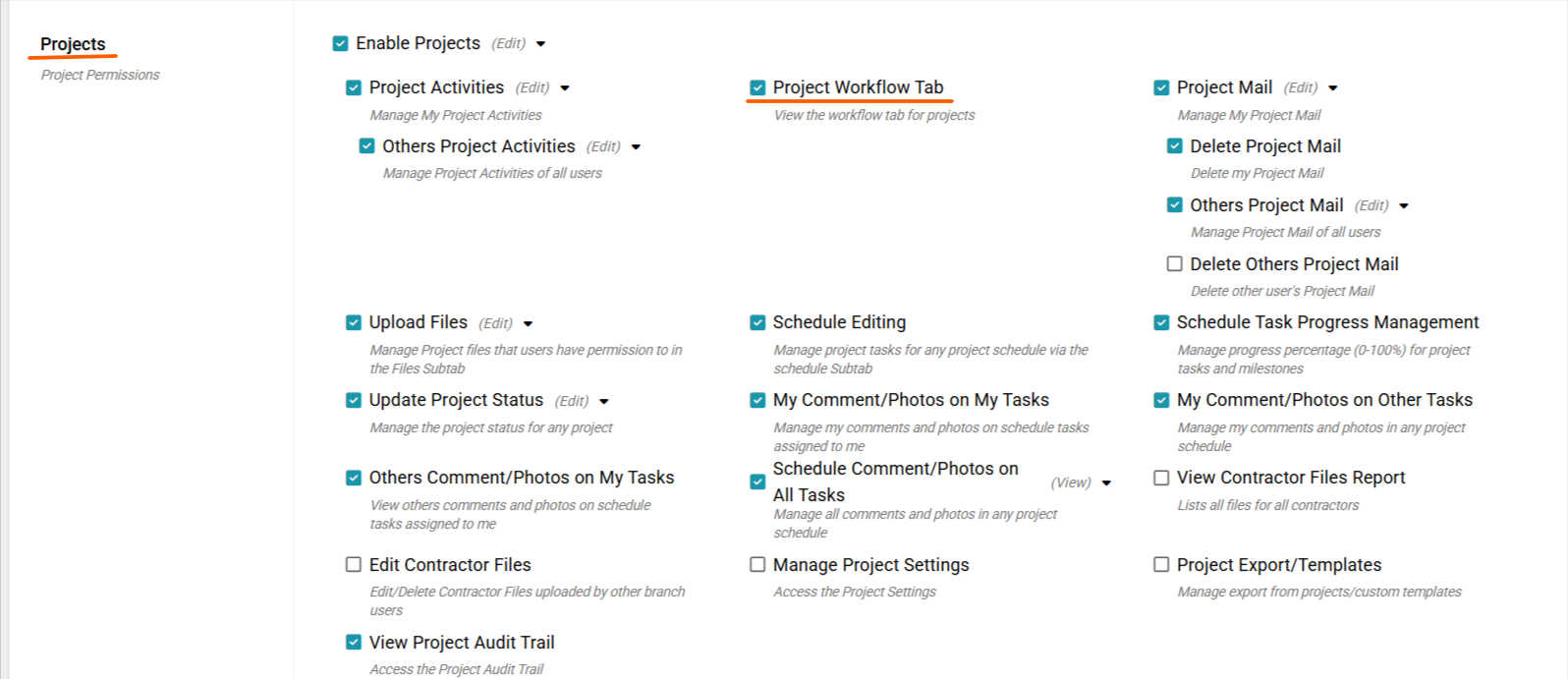This view is turned on by default for all Tier 1 users who have Projects access excluding Clients, Contractors, Site Staff and Timesheet.