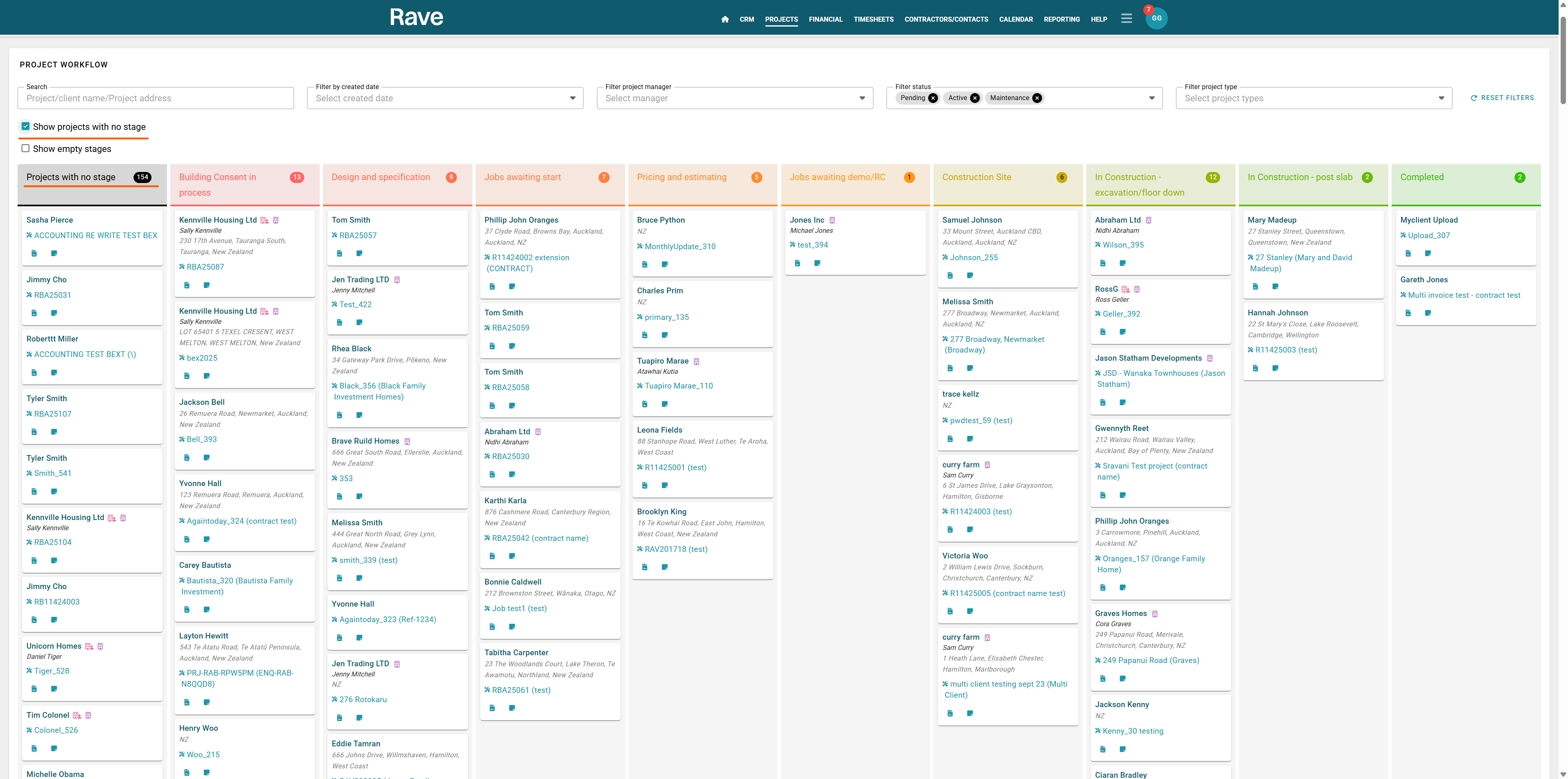 Project Stages: Each column represents a stage in the projects workflow and displays the total number of projects currently in that stage. You can learn how to customise your Project Stages here.