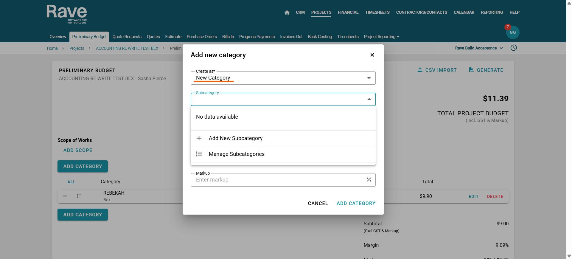 This article will step you through how to create and manage your Categories and Sub Categories from with a projects Preliminary Budget. To learn how Preliminary Budget works click here for the help article.