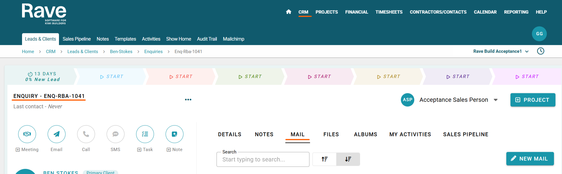 From the Enquiry screen, you will see the Mail tab along the top row.