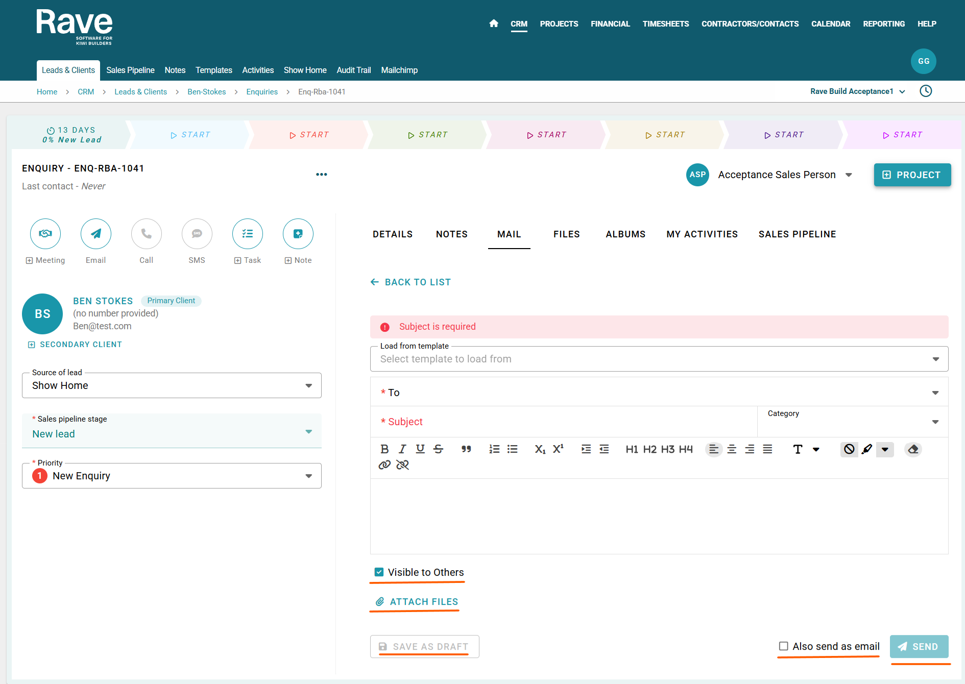 Delete enquiry mail - delete your own enquiry mail (this only deletes the record from Rave we cannot recall sent emails)