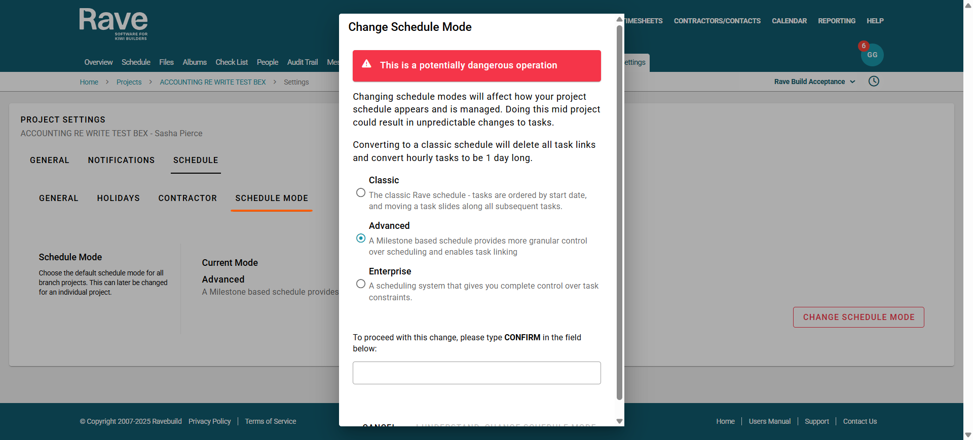 - Click the red Change Schedule Mode button