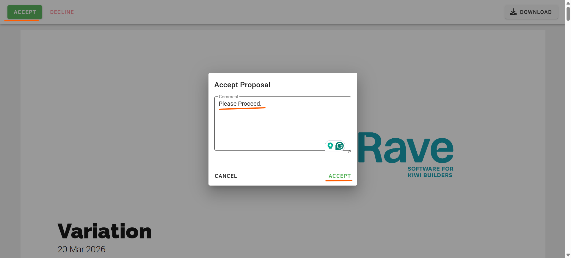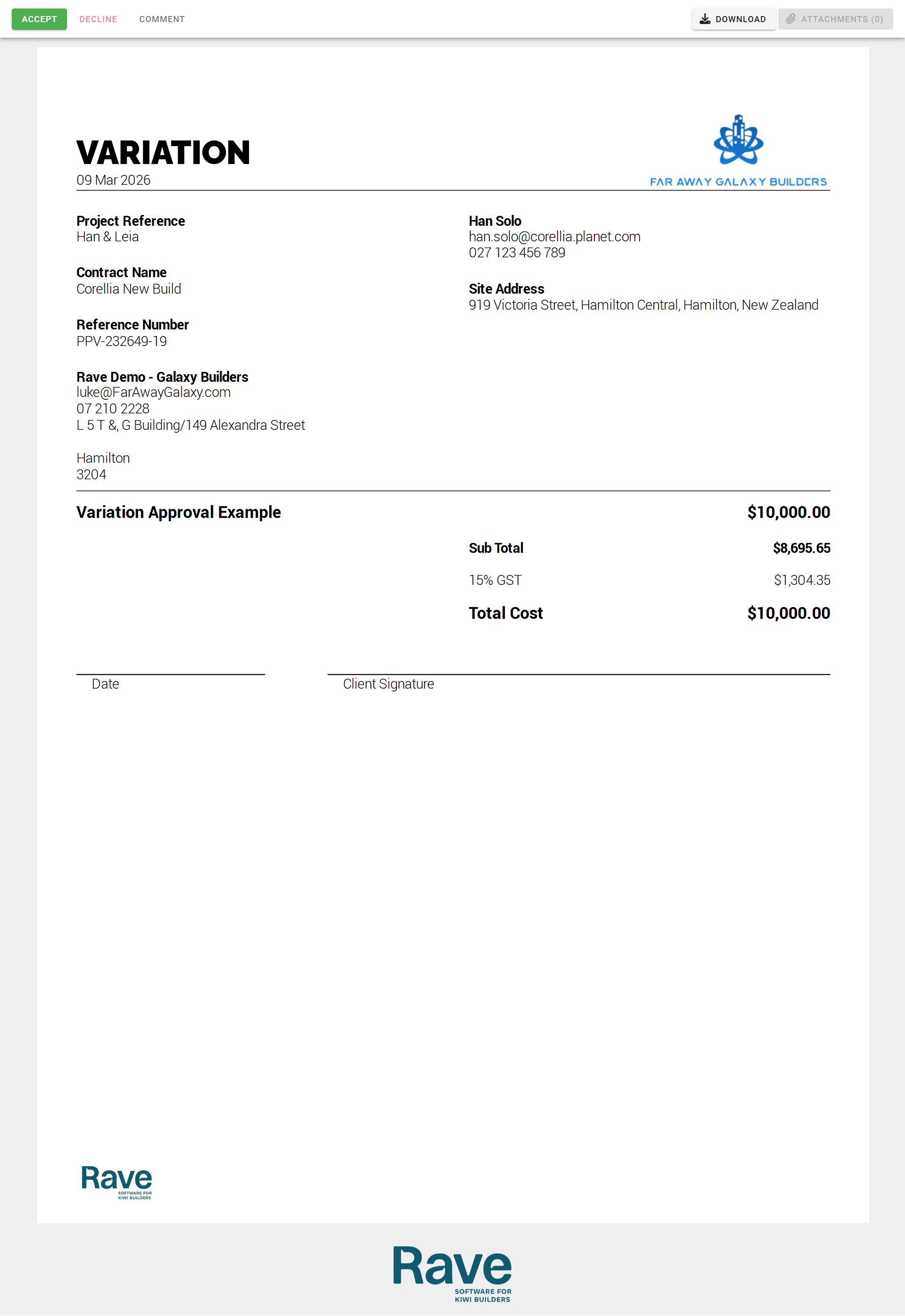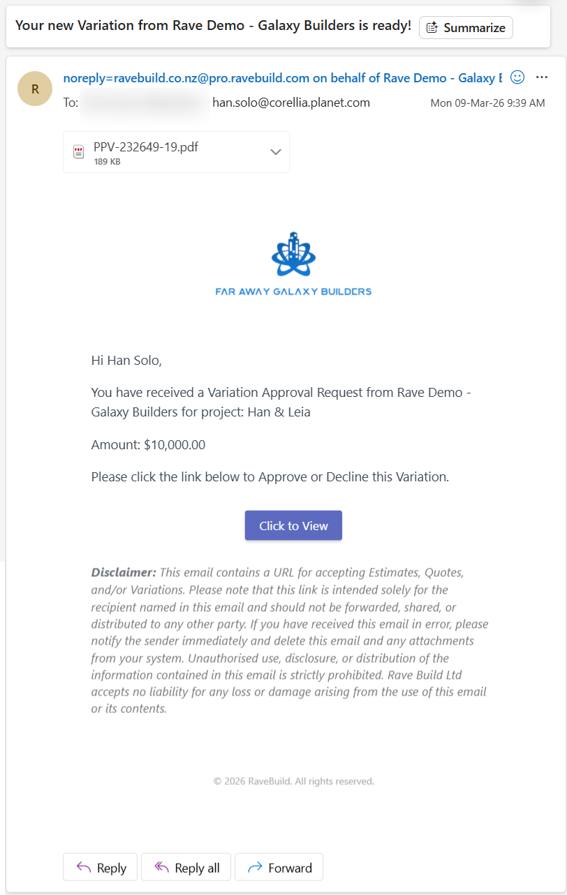 This article explains what to do when your building company sends you an estimate, proposal, or variation via email for approval, how to view it, provide feedback, and accept or decline it.