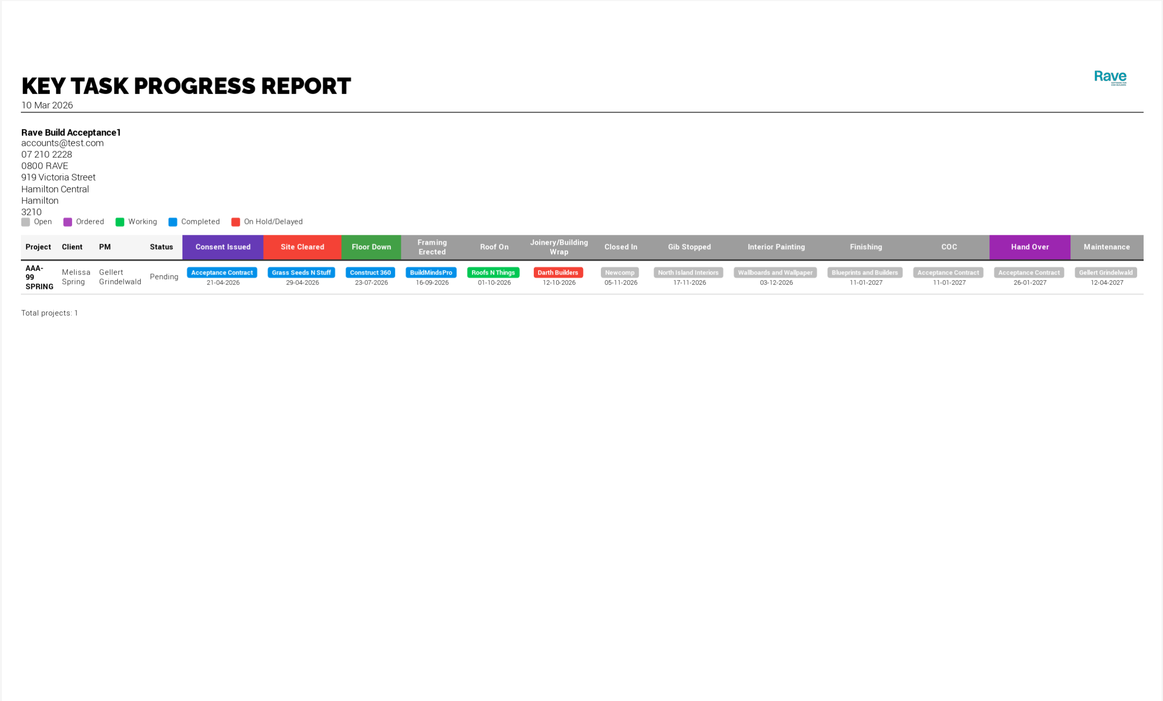 The Key Task Progress Report allows you to view all Key Tasks by contractor or assignee, helping you quickly identify important tasks and their current status.
