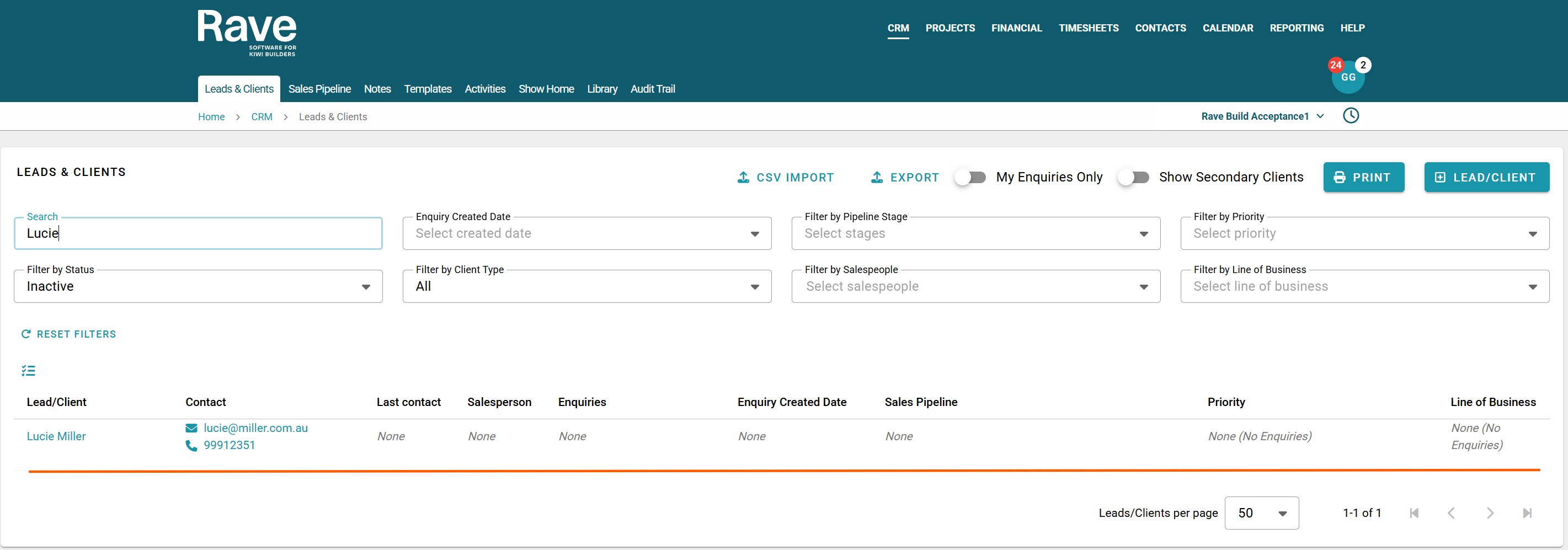 When clients are imported without an associated enquiry, they are automatically created as inactive clients. This allows them to be stored in the system and available for future use without appearing as active enquiries.