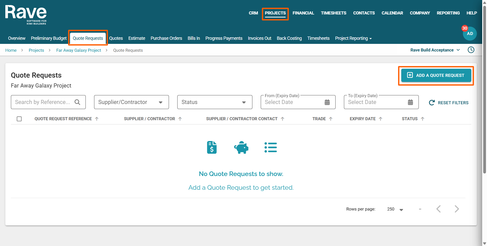 Rave automatically updates the Status of your Contractor Quote Request based on activity: