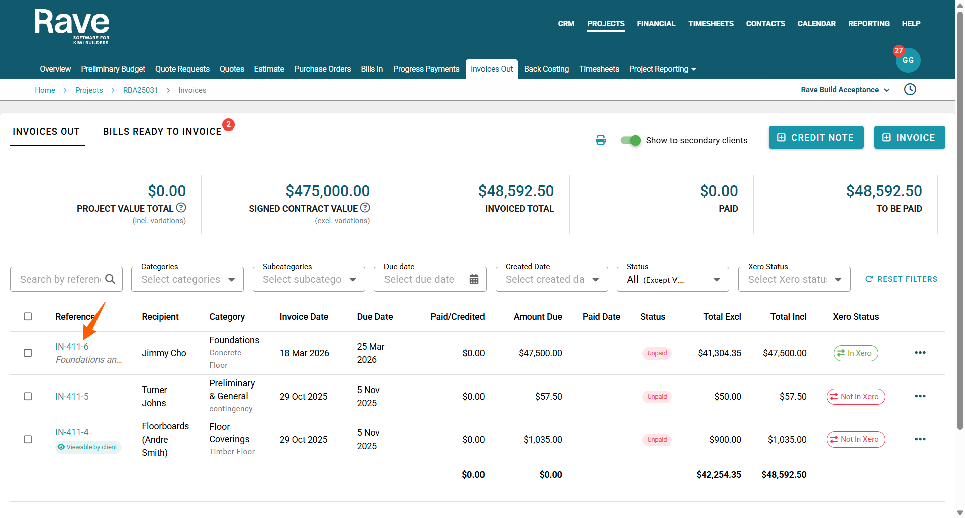 This will create the invoice(s) or credit note(s), notify your accounts team to take action, and if you are connected to Xero, this will push the invoice(s) or credit note(s) to Xero as a draft also.