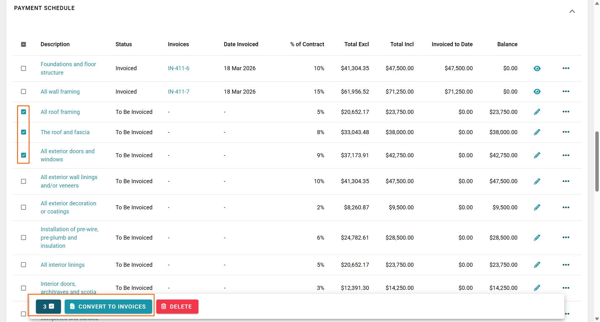 - And click the 'Convert to Invoices' button