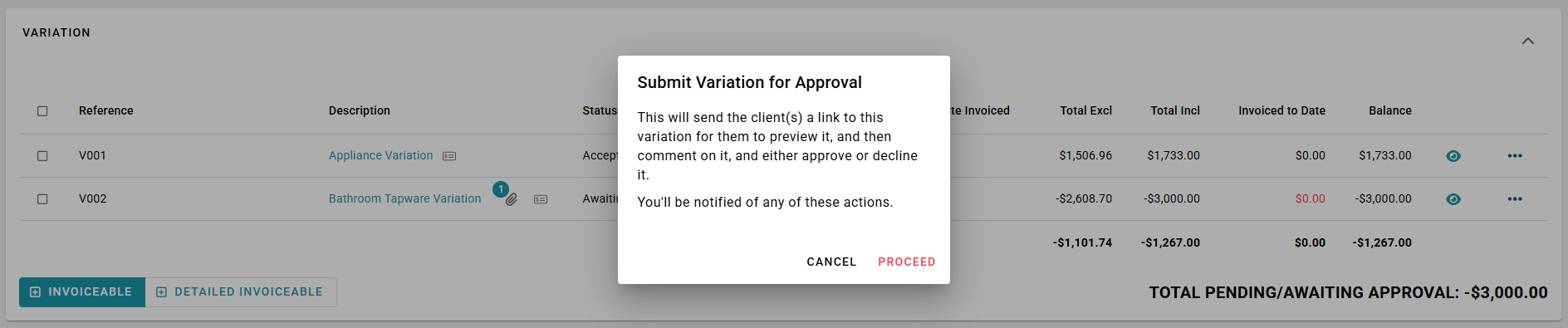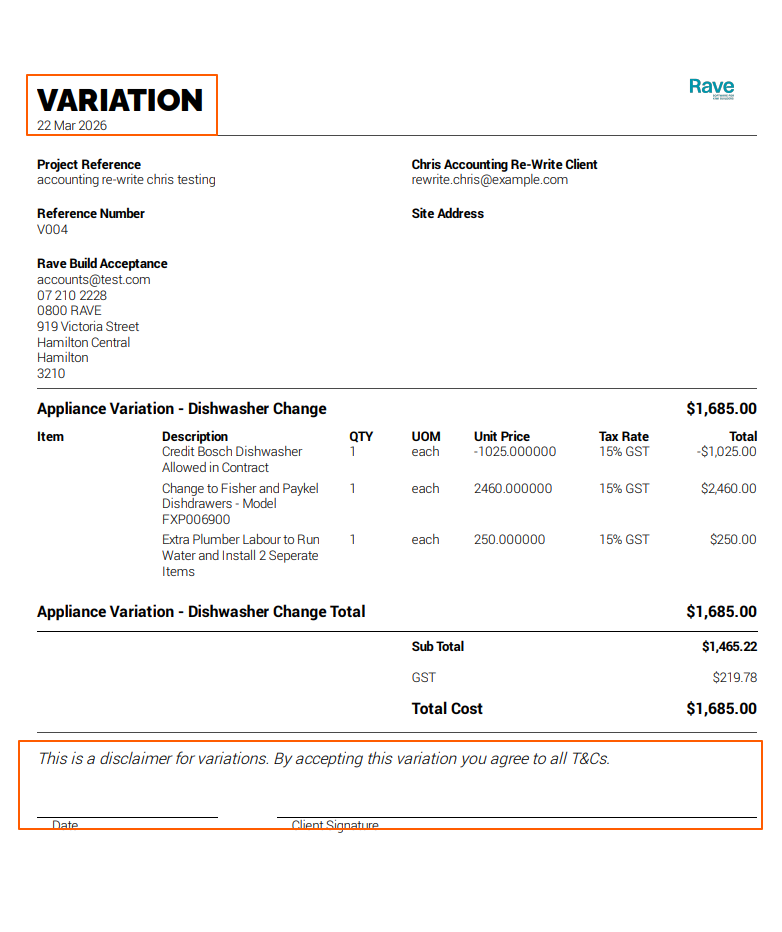 - Attach the signed document or email confirmation to the variation