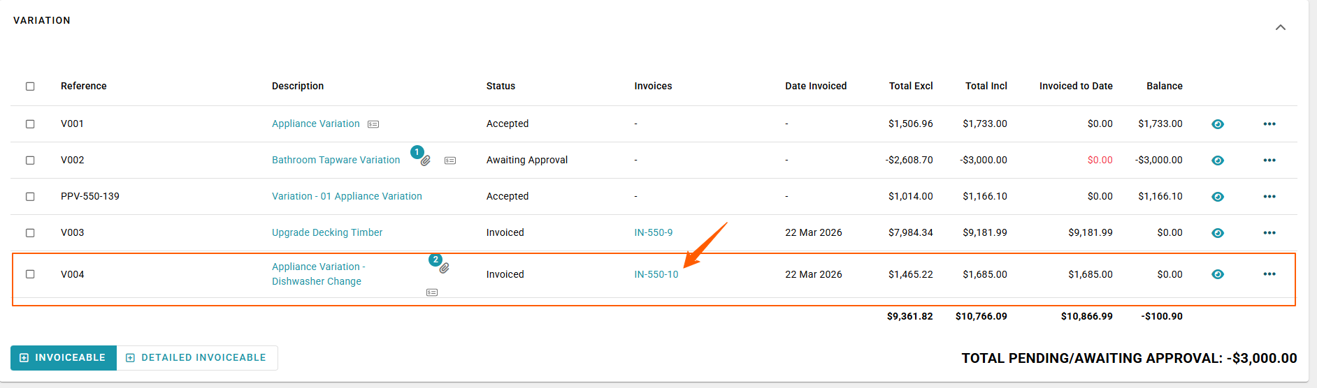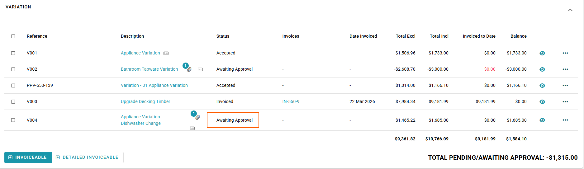 - Pending/awaiting approval totals are updated