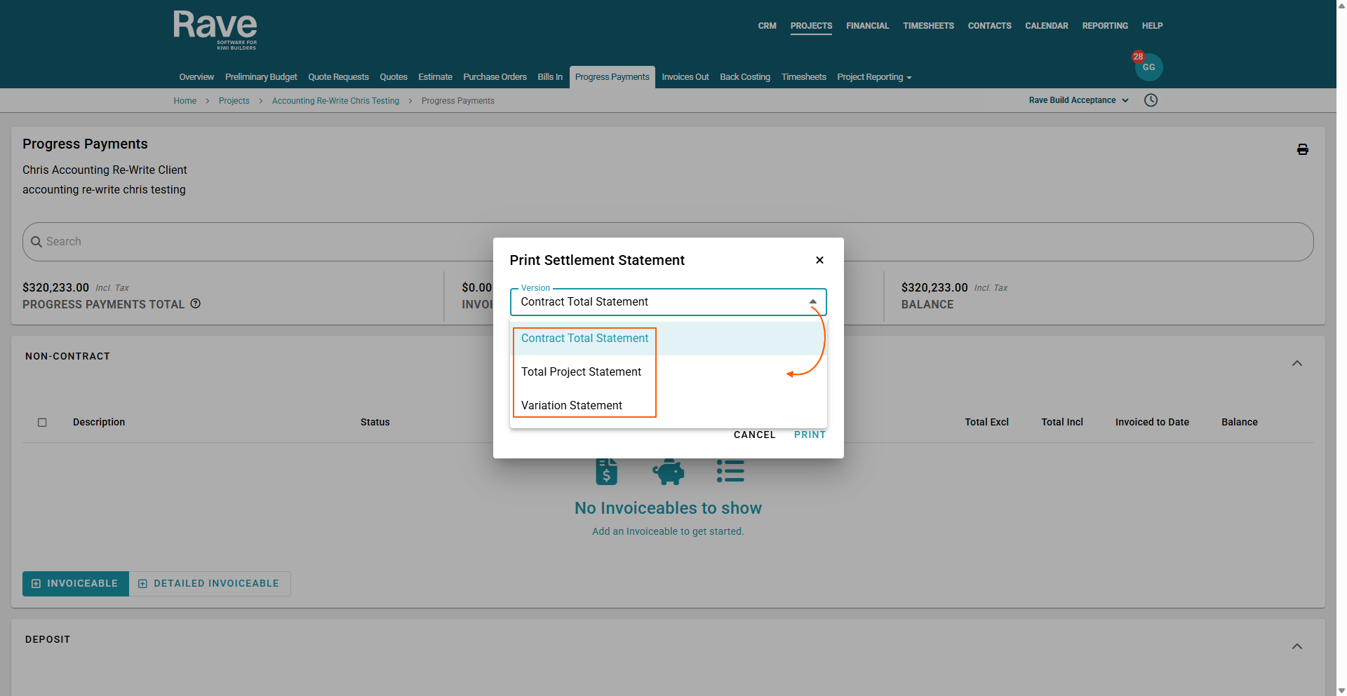 Once items have been added to the Progress Payments page of your project and you have begun invoicing you can download Settlement Statements for your clients.