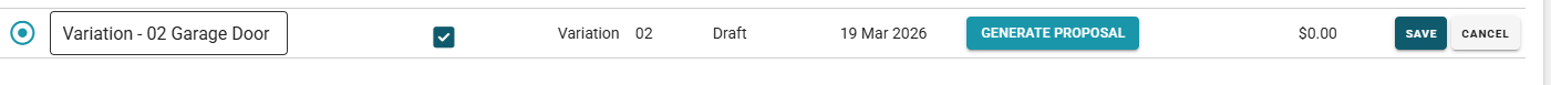 To create a new variation via the estimate/proposal page: