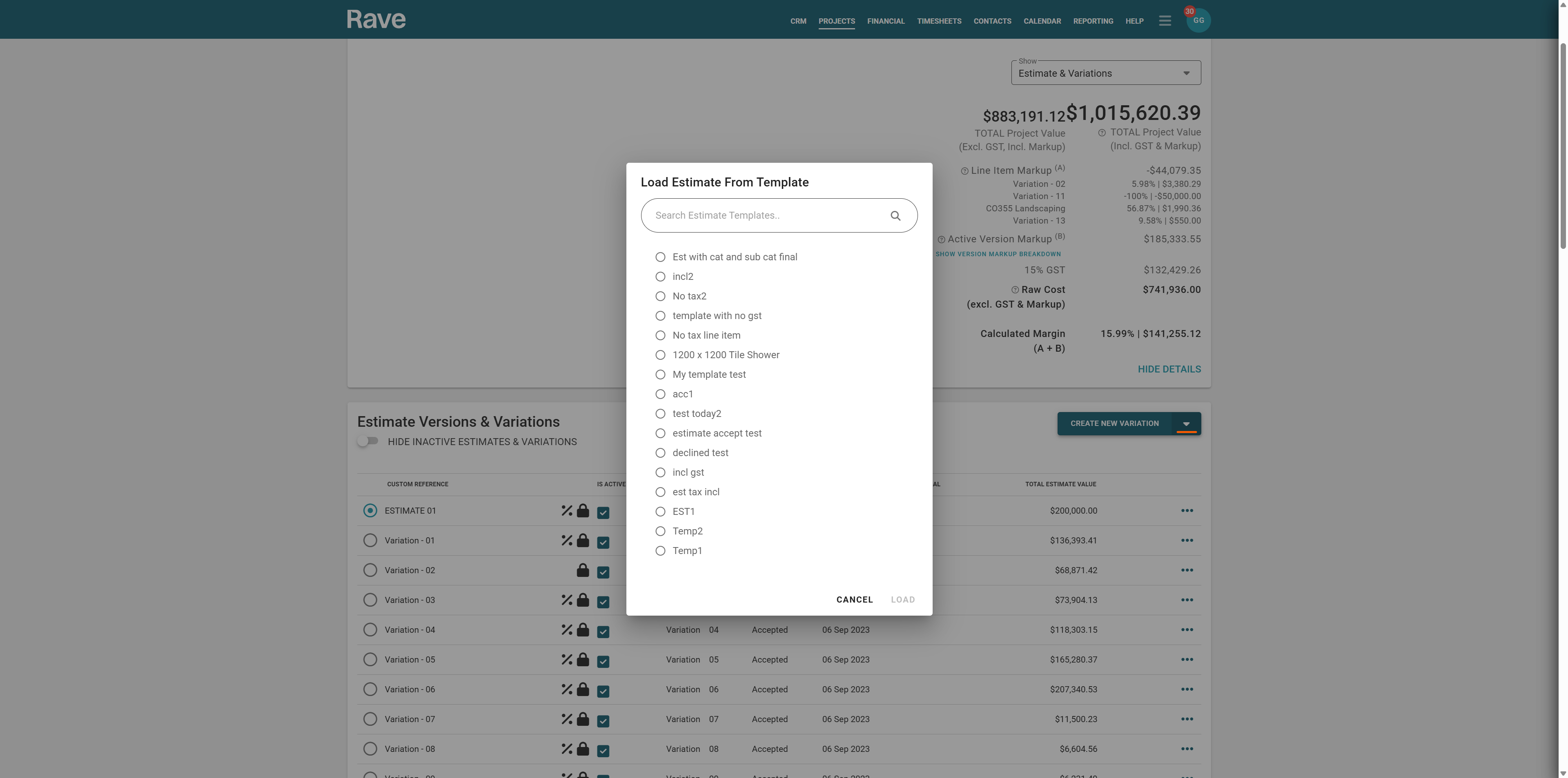 This will open the Load Estimate from Template pop-up. Choose the template you wish to load, then press Load.