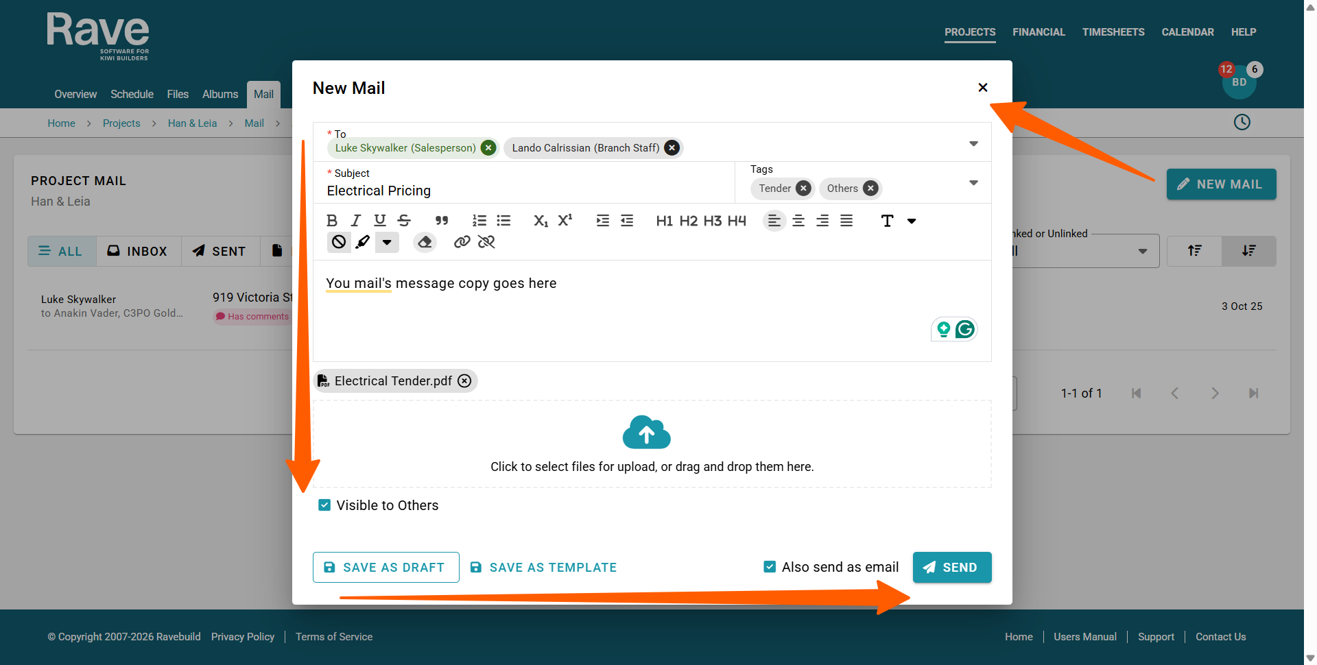 RAVE's Project Mail feature allows you to communicate with your projects' Project Manager at a project level similar to email.