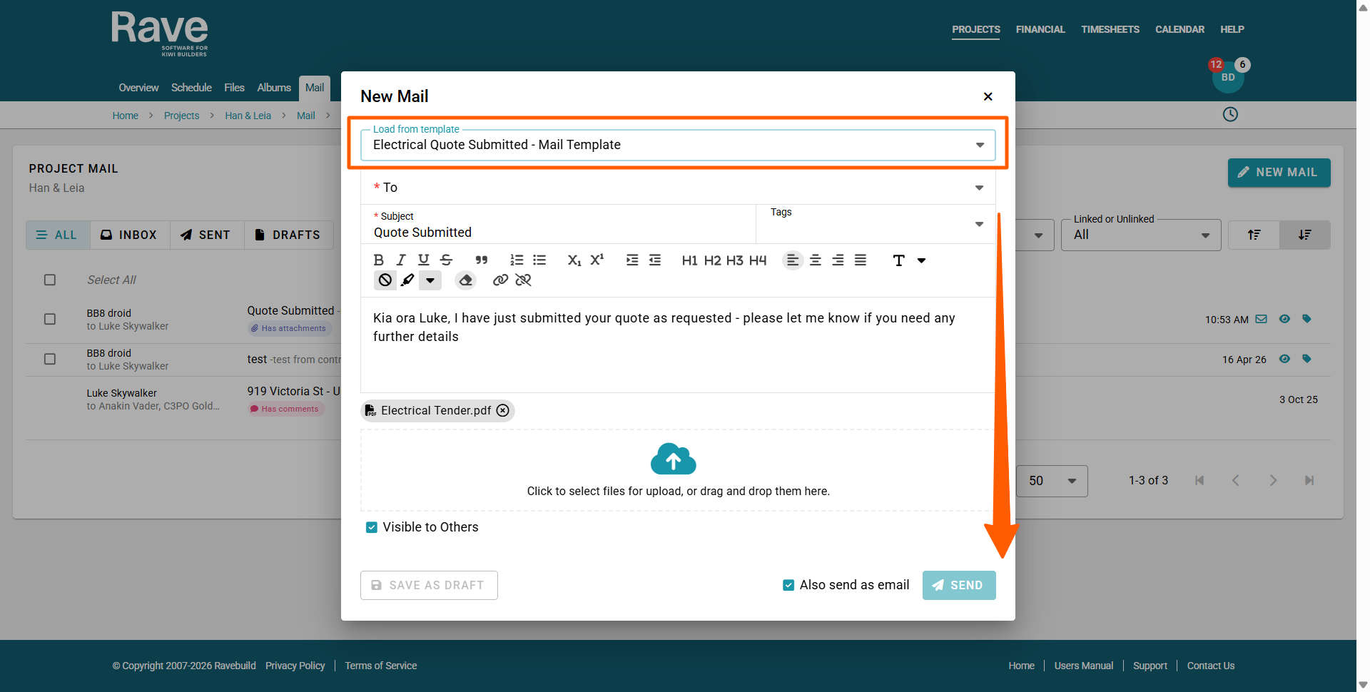 - Choose your recipients, the project manager or office staff, via the ‘To:’ drop-down
