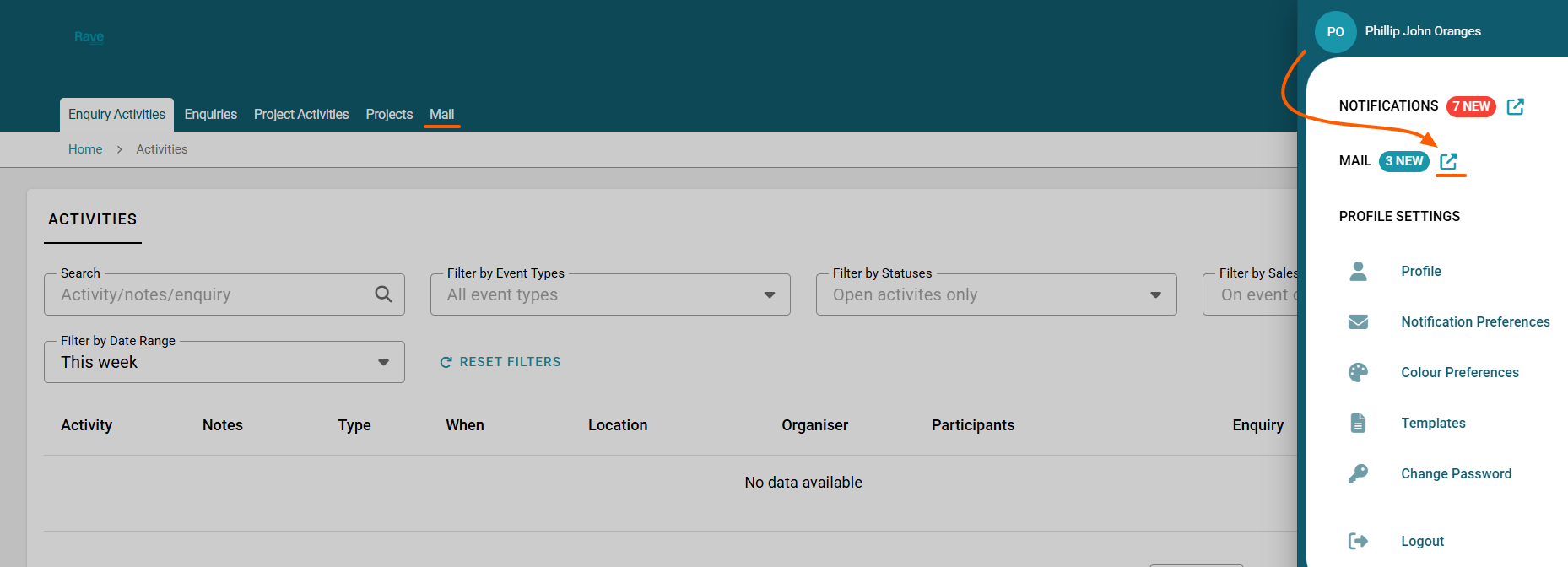Click on your Profile drop-down and then the little icon beside Mail, which will take you to My Mail