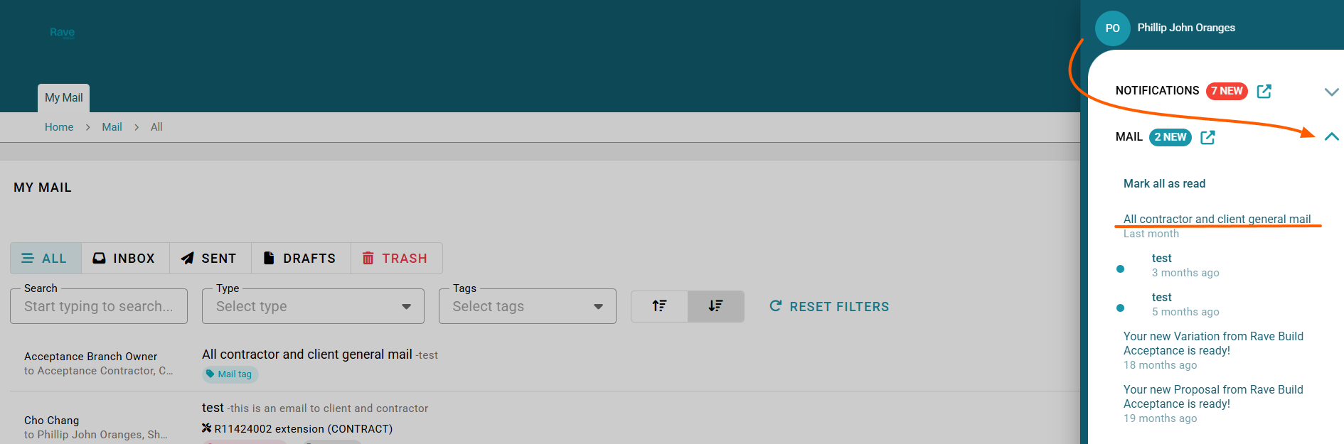 You could also choose to click the Mail Alert option. Expand the arrow beside Mail and open a specific mail alert which you take you to that Mail in the My mail tab