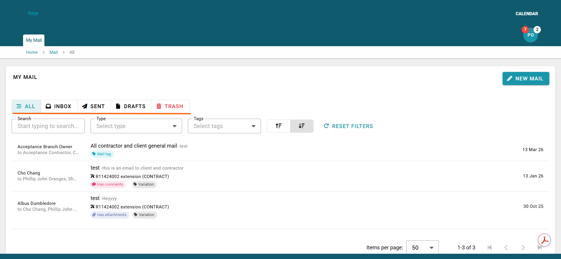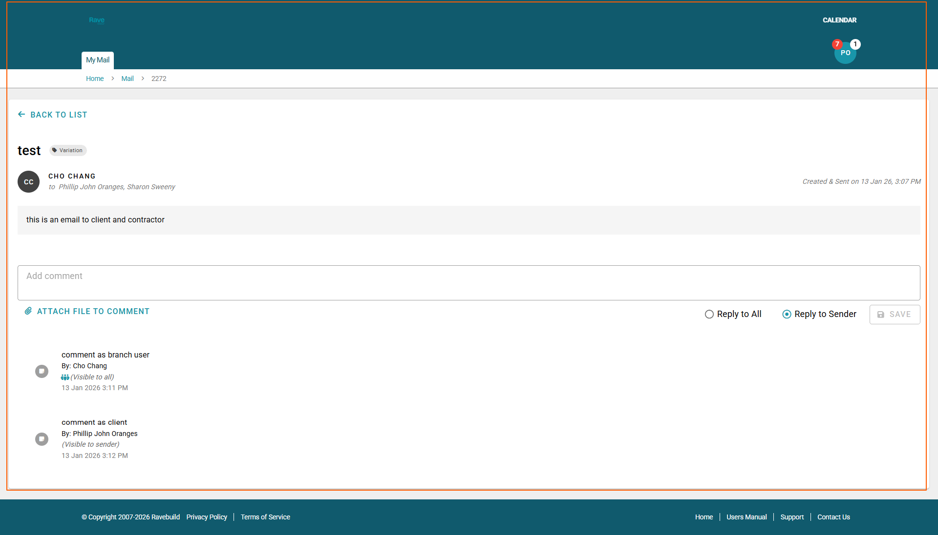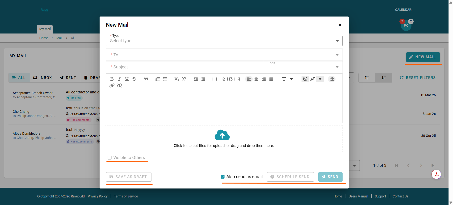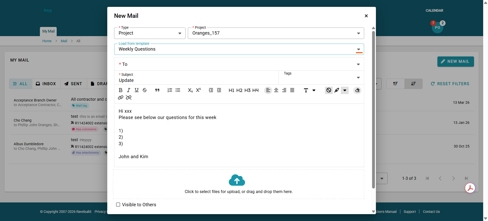 RAVE's Project Mail feature allows you to communicate with your Build Partners.