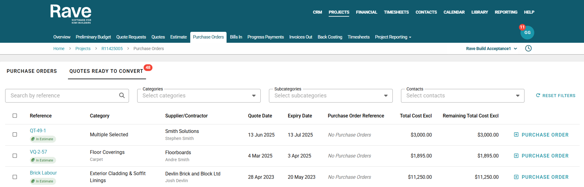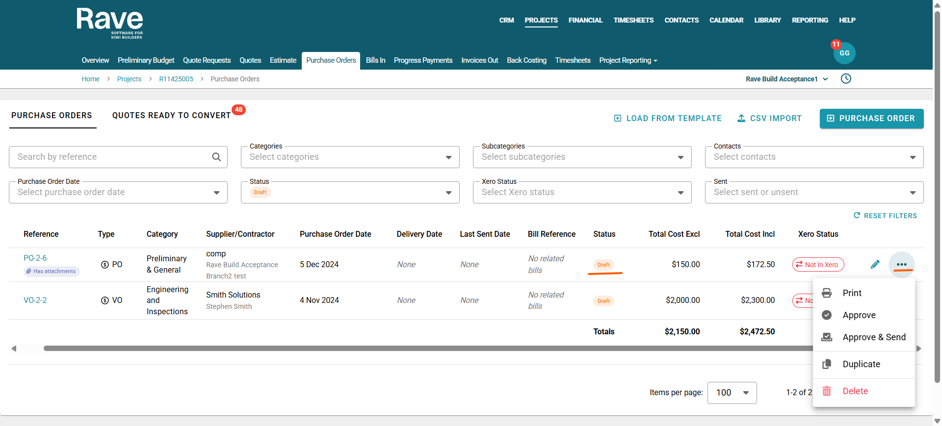 You'll need to type in a delivery person and delivery address, as multi-project Purchase Orders will have different project addresses and project managers in most cases.